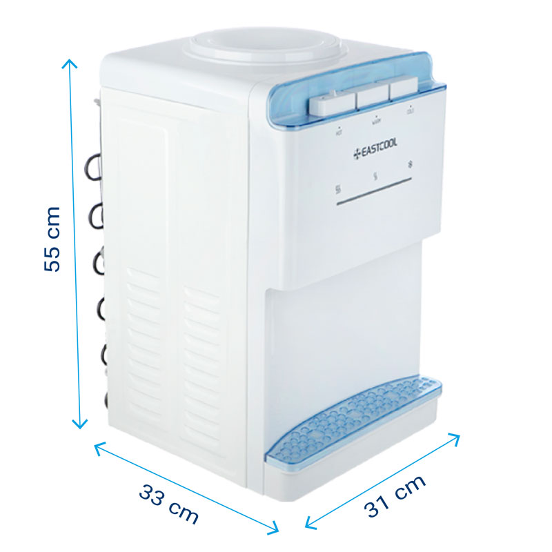 مدل ۴۱۴ TM-DW آبسردکن رومیزی با سه شیر آب سرد، گرم و ولرم به شما امکان دسترسی به آب با سه دمای مختلف را میدهد. سیستم خنککنندهی آب در این مدل ایستکول، با حفظ دمای آب سرد بین ۴ تا ۱۲ درجه سانتیگراد، آب آشامیدنی خنک و مطلوبی را در تمام فصول، بهخصوص در فصل تابستان برای شما تامین میکند. این دستگاه آب گـرم تولیدشـده را نیز با دمای بیـن ۷۰ تـا ۹۵ درجـه سانتیگراد حفظ میکند که دمایی مناسب برای صرف چای و قهوه است. آب ولرم هم در این دستگاه همیشه در دسترس است.